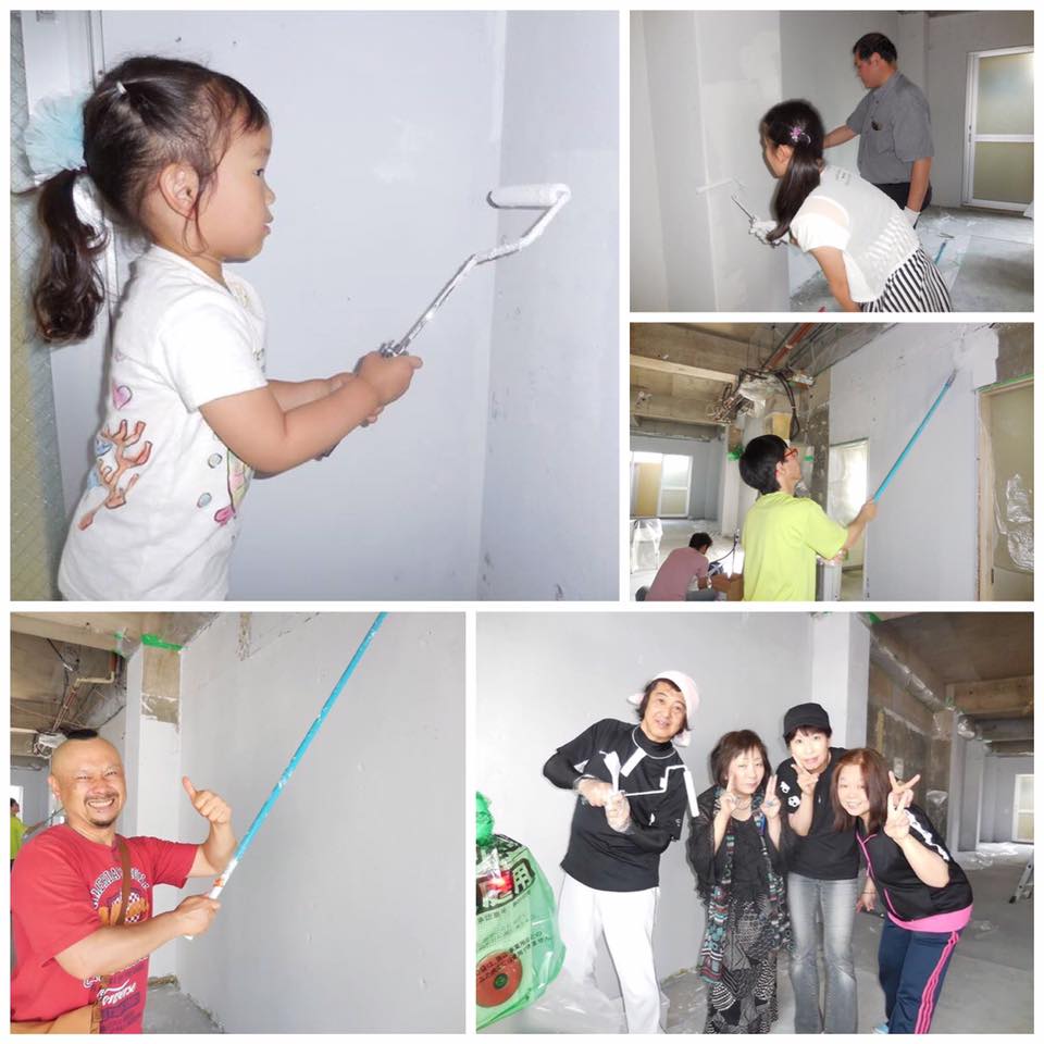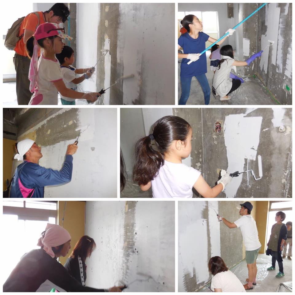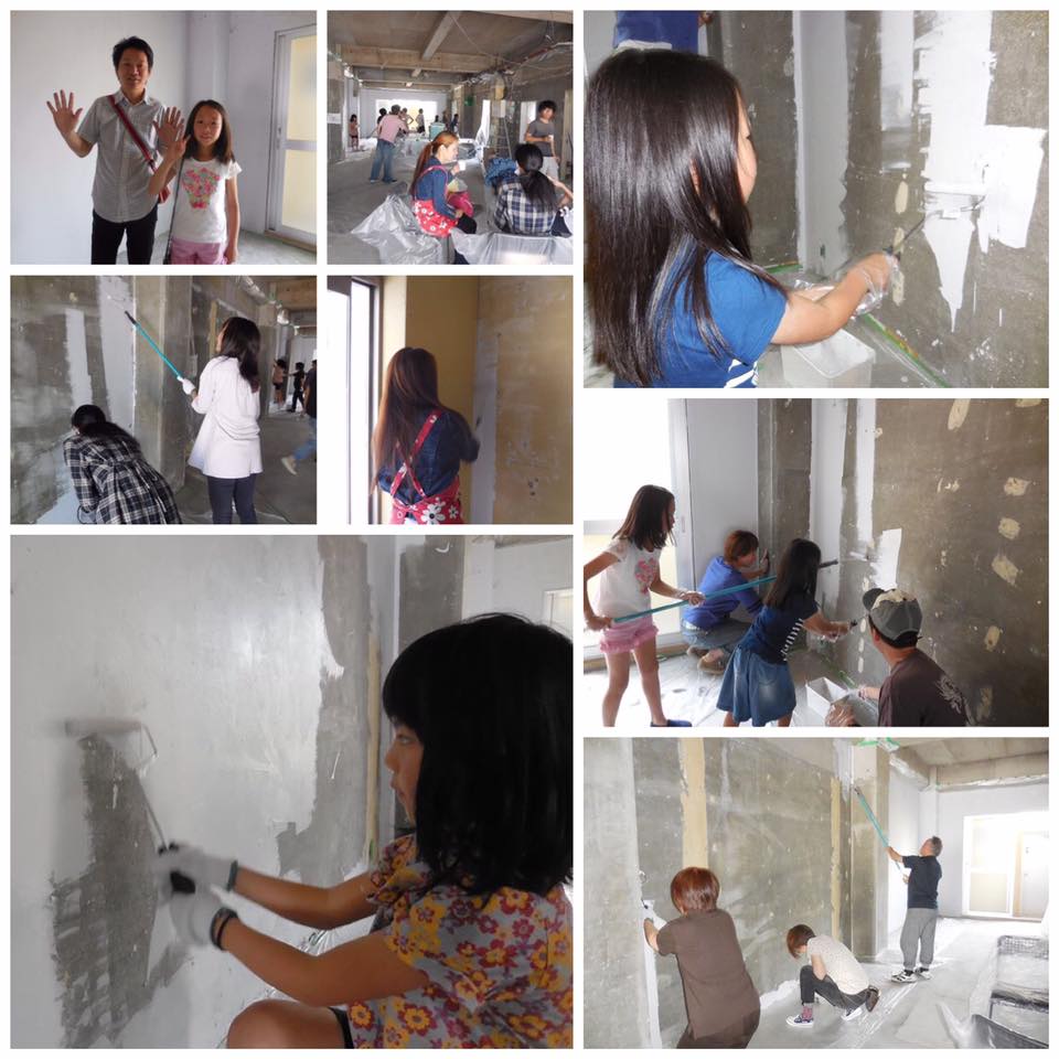 80名の方々に参加いただき、スケルトンだった施設内の壁を塗っていただきました。